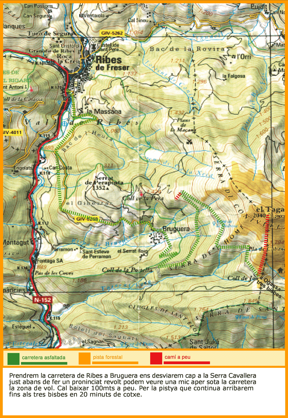 Si además estamos dispuestos a andar 1.5h podemos volar desde la cumbre del Taga con espectaculares vistas tanto a norte como sur. Tomaremos la carretera de Ribes a Bruguera nos desviaremos hacia la Sierra Cavallera.